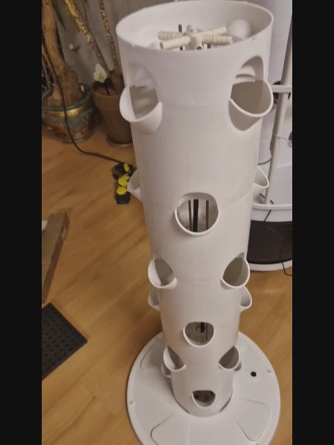 Join the agricultural revolution with our vertical hydroponic system, where innovation meets efficiency and gardening reaches new heights. Experience the future of fresh and sustainable plant cultivation in the comfort of your own home. This tower has 6 floors and can accommodate up to 4 plants per floor, allowing a total yield of up to 24 plants. --see here also used in the garden without LED lamps