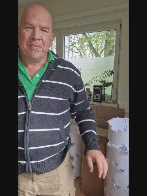 Join the agricultural revolution with our vertical hydroponic system, where innovation meets efficiency and gardening reaches new heights. Experience the future of fresh and sustainable plant cultivation in the comfort of your own home. This tower has 10 floors and can accommodate up to 6 plants per floor, allowing a total yield of up to 60 plants.